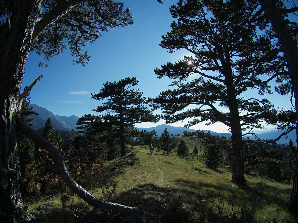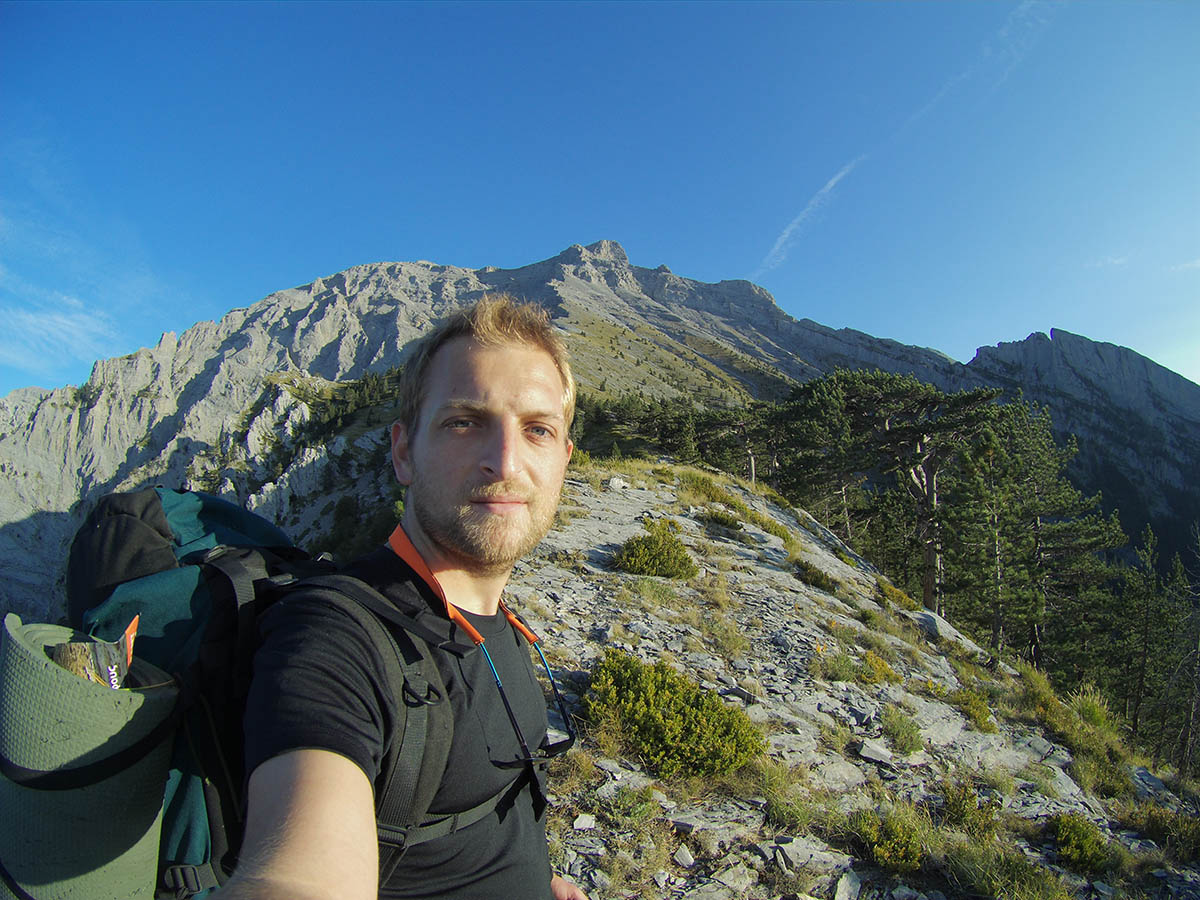 Έπειτα, ακολουθήσαμε την κορυφογραμμή της ράχης Παπά, πήραμε τις ανάσες μας και ανταμειφθήκαμε με μια υπέροχη πανοραμική θέα! Από εκεί βλέπεις τις βόρειες ορθοπλαγιές του Ολύμπου, την κόψη Ναούμ και τα Καζάνια. Αφού περάσαμε τα τελευταία μαυρόπευκα στους Πύργους συνεχίσαμε σε αλπικό τοπίο, με σαθρό έδαφος και έντονη κλίση μέχρι το Οροπέδιο.