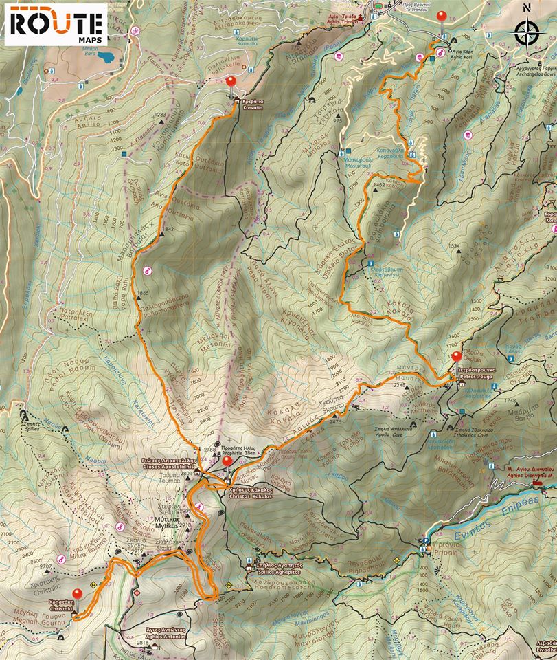 Η διαδρομή που ακολουθήσαμε στον χάρτη μας: Ανάβαση στο Οροπέδιο από τον αγαπημένο Μπαρμπαλά, πολύ κέφι στο καταφύγιο Χρήστος Κάκαλος, διανυκτέρευση σε bivybag με θέα το Στεφάνι και τ' αστέρια, τρεξιματάκι μέχρι το καταφύγιο ανάγκης Χρηστάκη, διανυκτέρευση στο αγαπημένο καταφύγιο της Πετρόστρουγκας και κατάβαση στην Αγία Κόρη!